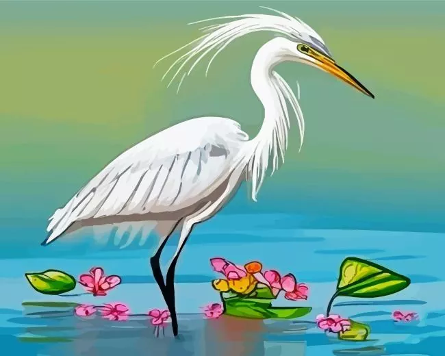 Abstract Great Egret Diamond Painting