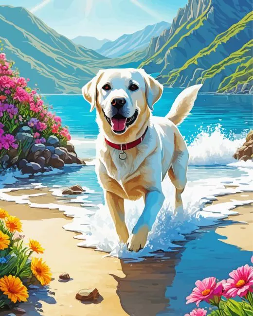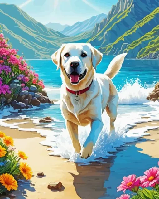 Blonde Labrador In The Beach Diamond Painting