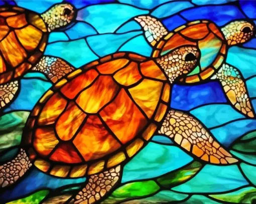Colorful Sea Turtles Stained Glass Diamond Painting