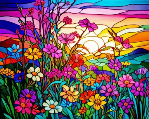 Colorful Wildflowers Stained Glass Diamond Painting
