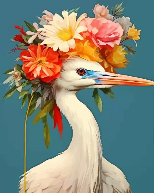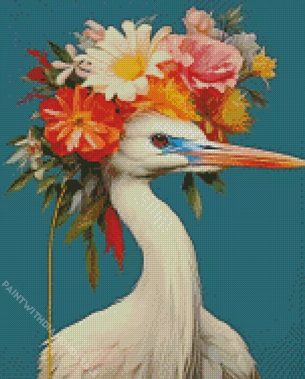 Floral Great Egret Diamond Painting