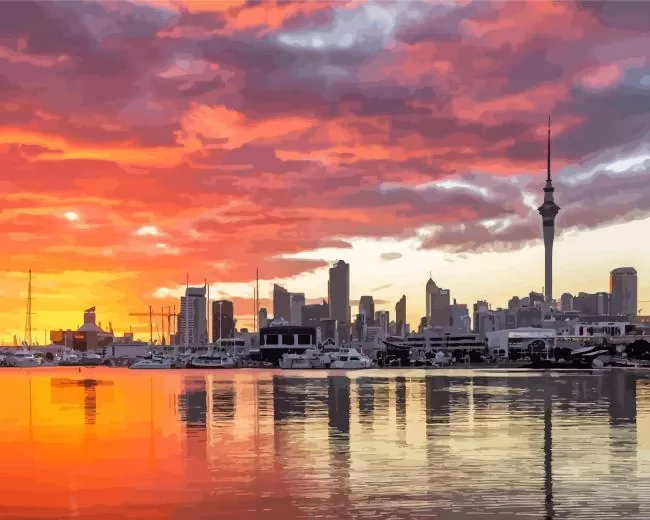 Orange Sunset In Seabridge in Auckland Diamond Painting