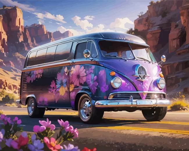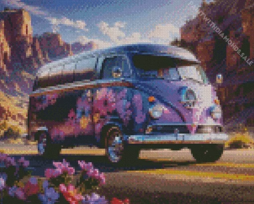 Purple Volkswagen Bus Diamond Painting